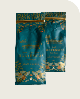 Café de especialidad (86 puntos) de Finca Las Hortensias, Santander. Cultivado bajo la sombra de bosque nativo, con acidez media, cuerpo cremoso y notas de frutos rojos, cacao y panela. Con certificación orgánico y sostenible.
