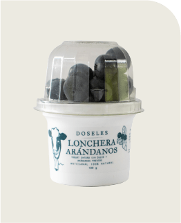Yogurt griego artesanal premium en cama de miel pura y arándanos frescos. Energía y sabor en versión práctica.